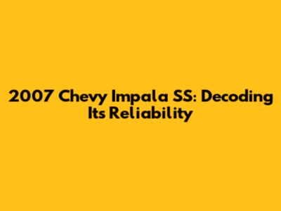 2007 Chevy Impala SS: Reliability, Common Issues & Solutions