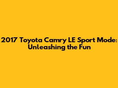 The 2017 Toyota Camry LE is known for its reliability and fuel efficiency, but did you know it also has a sport mode? Let's dive into what that sport mode does and how it can enhance your driving experience. Guys, if you're looking to add a little pep to your daily commute, understanding the sport mode in your Camry LE is a great place to start!