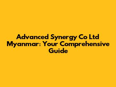 Hey guys! Planning to dive into the business scene in Myanmar? Or maybe you're just curious about the key players in the market? Well, you've landed in the right spot! Let's talk about Advanced Synergy Co Ltd Myanmar, a company that's been making waves and is definitely worth knowing about. We'll break down everything you need to know, from what they do to why they matter. So, grab a coffee, sit back, and let's get started!