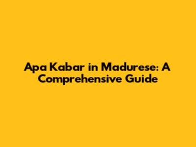 Apa Kabar In Madurese: A Comprehensive Guide