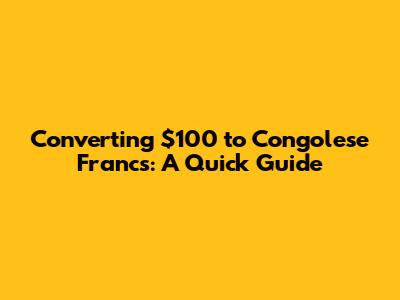 Converting $100 To Congolese Francs: A Quick Guide