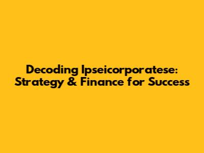 Decoding Ipseicorporatese: Strategy & Finance For Success