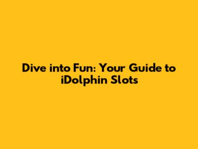 Dive Into Fun: Your Guide To IDolphin Slots
