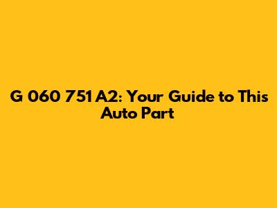 G 060 751 A2: Your Guide To This Auto Part