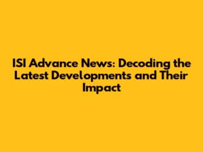 ISI Advance News: Breaking Down The Latest Updates