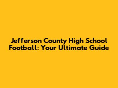 Jefferson County High School Football: Game Schedules & More!