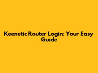 Keenetic Router Login: Easy Guide