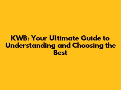 KWB: Your Ultimate Guide To Understanding And Choosing The Best