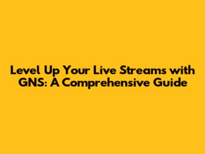 Level Up Your Live Streams With GNS: A Comprehensive Guide