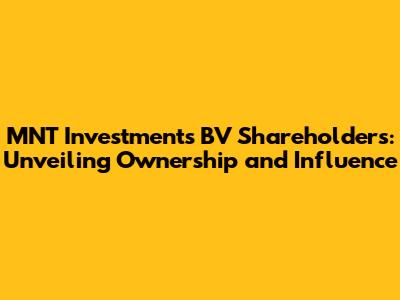 MNT Investments BV Shareholders: A Comprehensive Overview