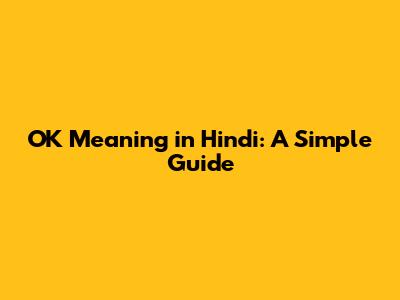 OK Meaning In Hindi: A Simple Guide