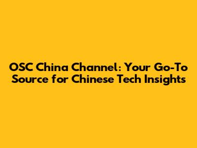 OSC China Channel: Your Go-To Source For Chinese Tech Insights