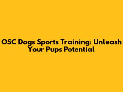 OSC Dogs Sports Training: Find Programs Near You!