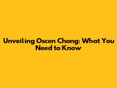 Unveiling Oscen Chong: What You Need to Know