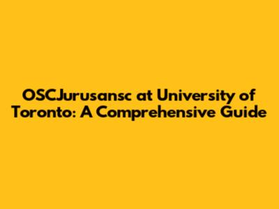 OSCJurusansc At University Of Toronto: A Comprehensive Guide