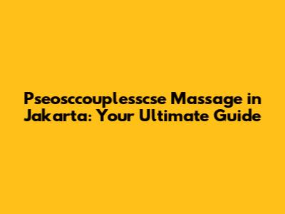Hey guys! Ever heard of pseosccouplesscse massage? If you're in Jakarta and looking for the ultimate relaxation experience, you've come to the right place. This guide will dive deep into what pseosccouplesscse massage is all about, what to expect, and where to find the best spots in Jakarta. We'll break it down in a way that's super easy to understand, so you can make an informed decision and treat yourself to some much-needed pampering. Jakarta, the bustling capital of Indonesia, is not only known for its vibrant culture and delicious cuisine but also for its diverse range of wellness and relaxation services. Among these, the pseosccouplesscse massage stands out as a unique and sought-after experience. But what exactly is it, and why is it gaining so much popularity? Let's delve into the details.
