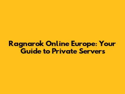 Ragnarok Online Europe: Your Guide To Private Servers
