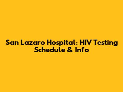 San Lazaro Hospital: HIV Testing Schedule & Info
