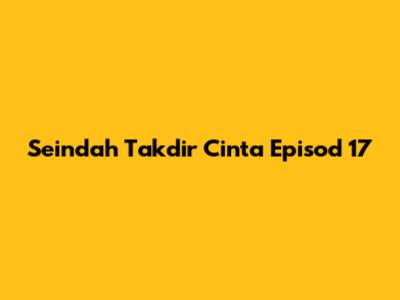 Whether you're a longtime fan or new to the series, Episode 17 is sure to captivate you with its engaging storyline and relatable characters. So grab your popcorn, settle in, and get ready for another unforgettable episode of Seindah Takdir Cinta!