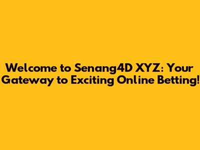 Welcome to Senang4D XYZ: Your Gateway to Exciting Online Betting!