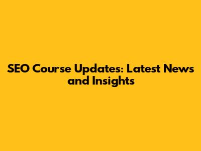SEO Course Updates: Latest News And Insights