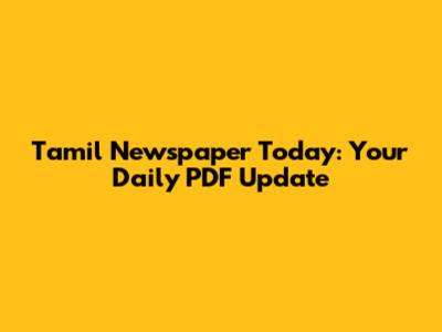 Tamil Newspaper Today: Your Daily PDF Update