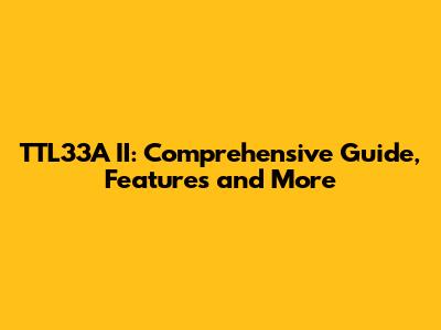 TTL33A II: Comprehensive Guide, Features And More