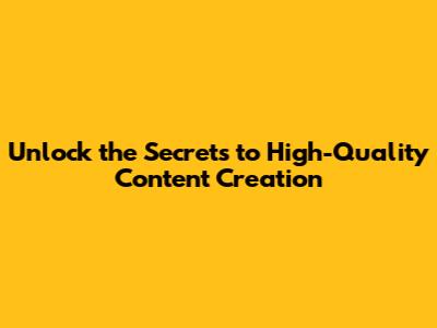Unlock The Secrets To High-Quality Content Creation