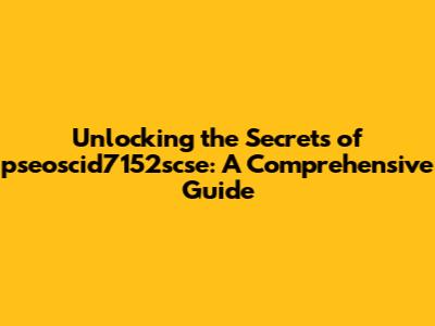 Unlocking The Secrets Of Pseoscid7152scse: A Comprehensive Guide