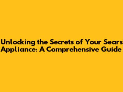 Unlocking The Secrets Of Your Sears Appliance: A Comprehensive Guide