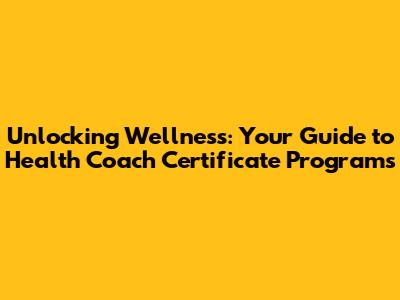 Unlocking Wellness: Your Guide To Health Coach Certificate Programs