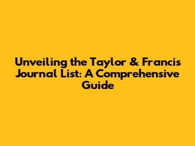 Unveiling The Taylor & Francis Journal List: A Comprehensive Guide